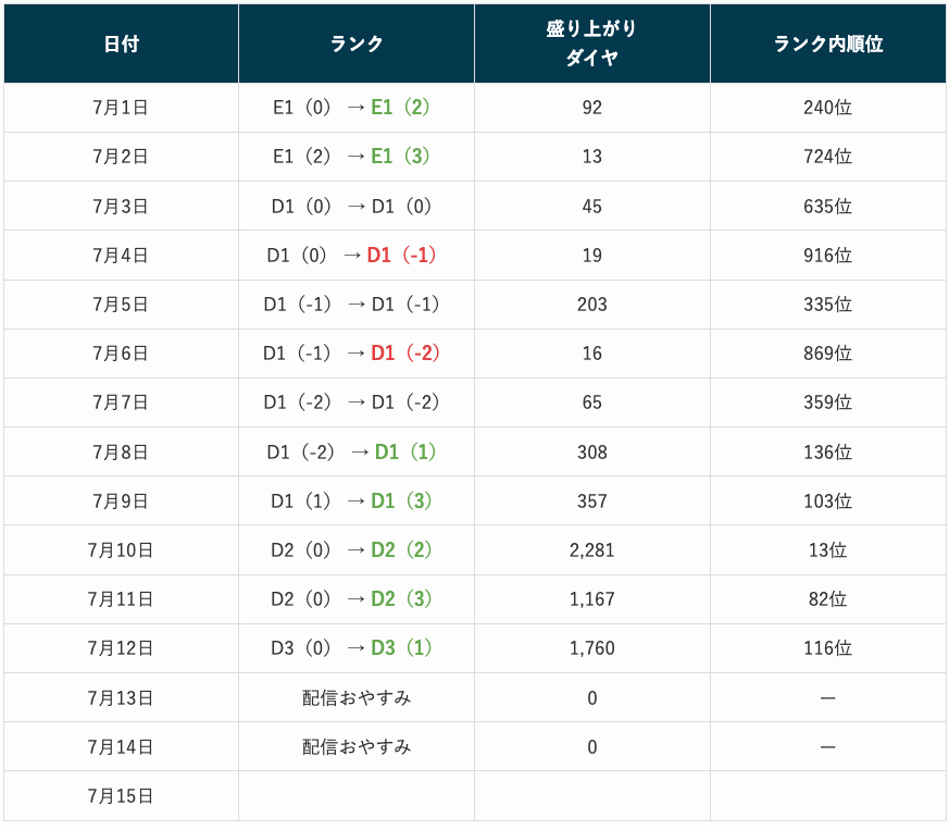 こちらは2024年7月1日からライバー活動をされている、配信未経験の方のデータです。