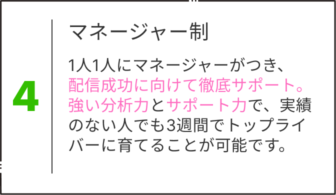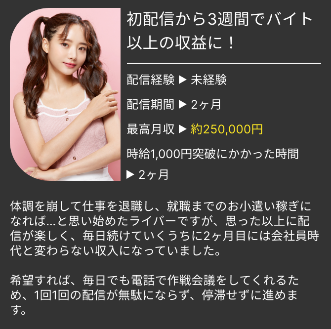 また、ライバー様は最終的に弊社の広告やプロモーション案件をお願いするために育成しているため、ライバー事業での大きな利益を予定しておりません。
