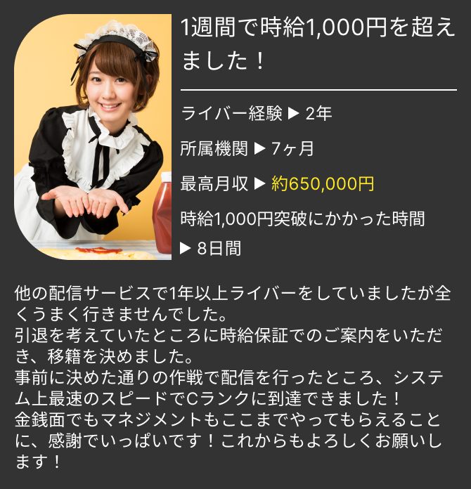 顔を出さずに配信されている女性ですが、当事務所のサポートもあり順調にランクを上げております。